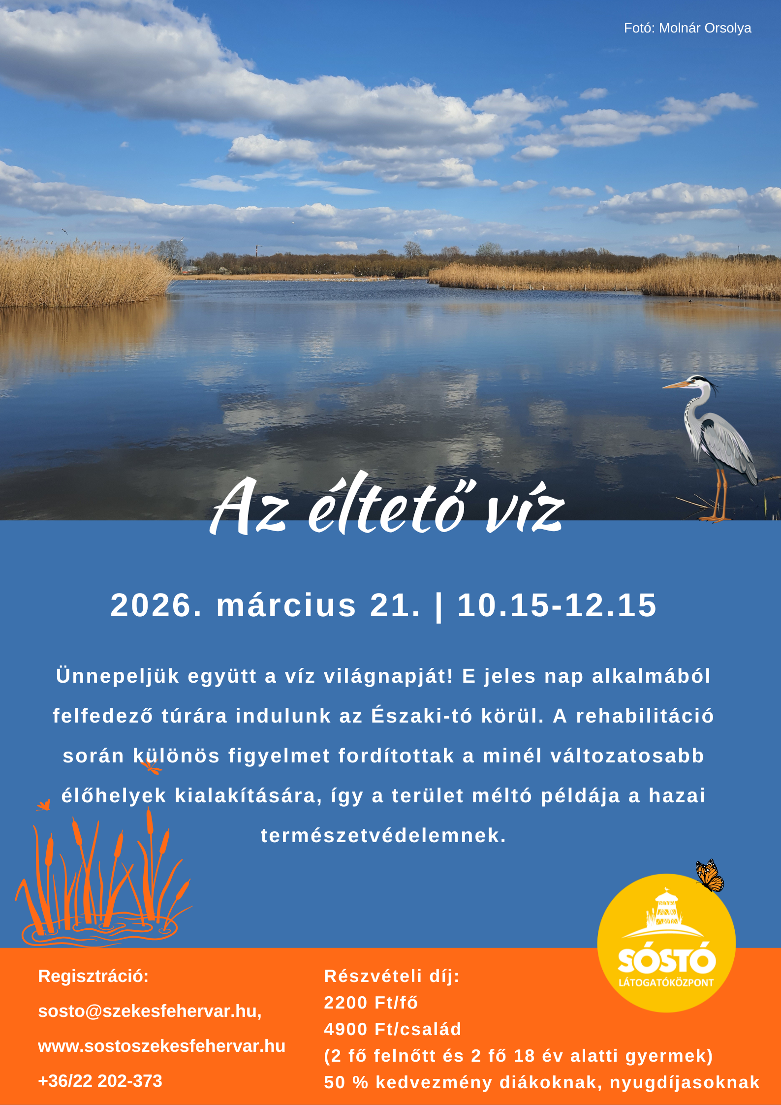 Ünnepeljük együtt a víz világnapját! E jeles nap alkalmából felfedező túrára indulunk az Északi-tó körül. A rehabilitáció során különös figyelmet fordítottak a minél változatosabb élőhelyek kialakítására, így a terület méltó példája a hazai természetvédelemnek.