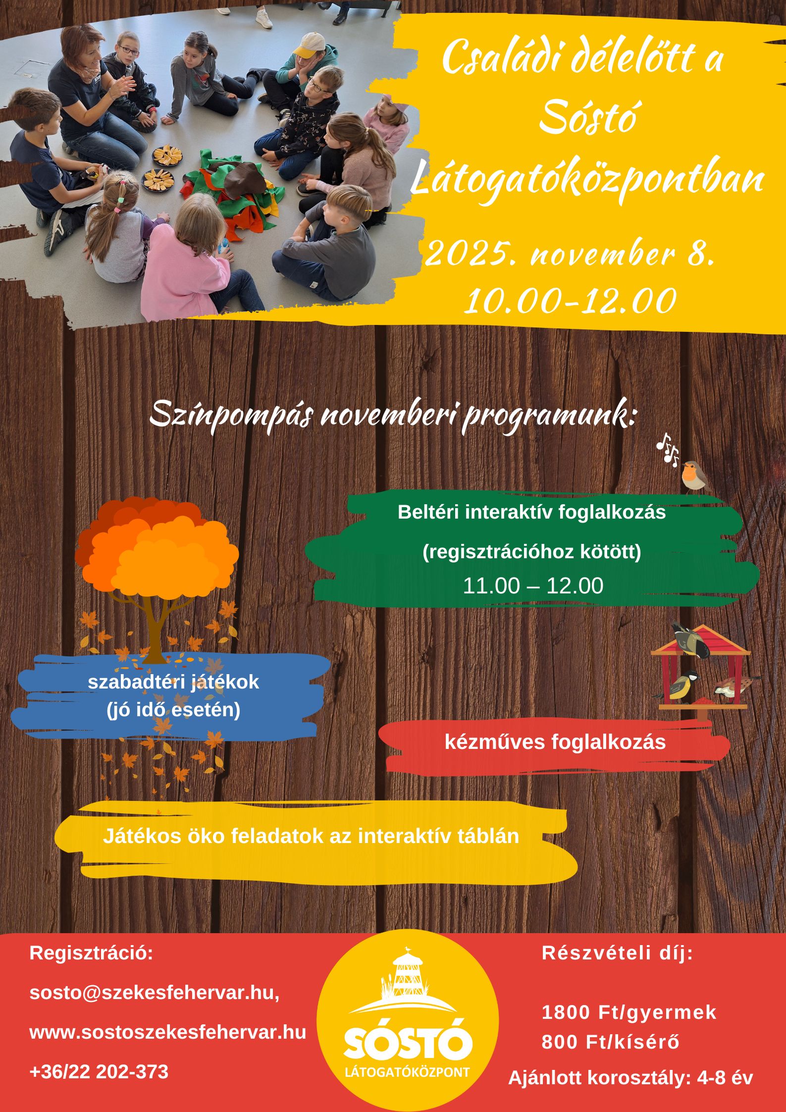 A Sóstó Látogatóközpont novemberben is vár Családi délelőttel! Ezúttal mindenki elkészítheti saját madáretetőjét, de a mesés interaktív foglalkozás sem maradhat el, melynek témája a természet körforgása lesz. Jó idő esetén pedig kültéri játékok is várnak majd benneteket.