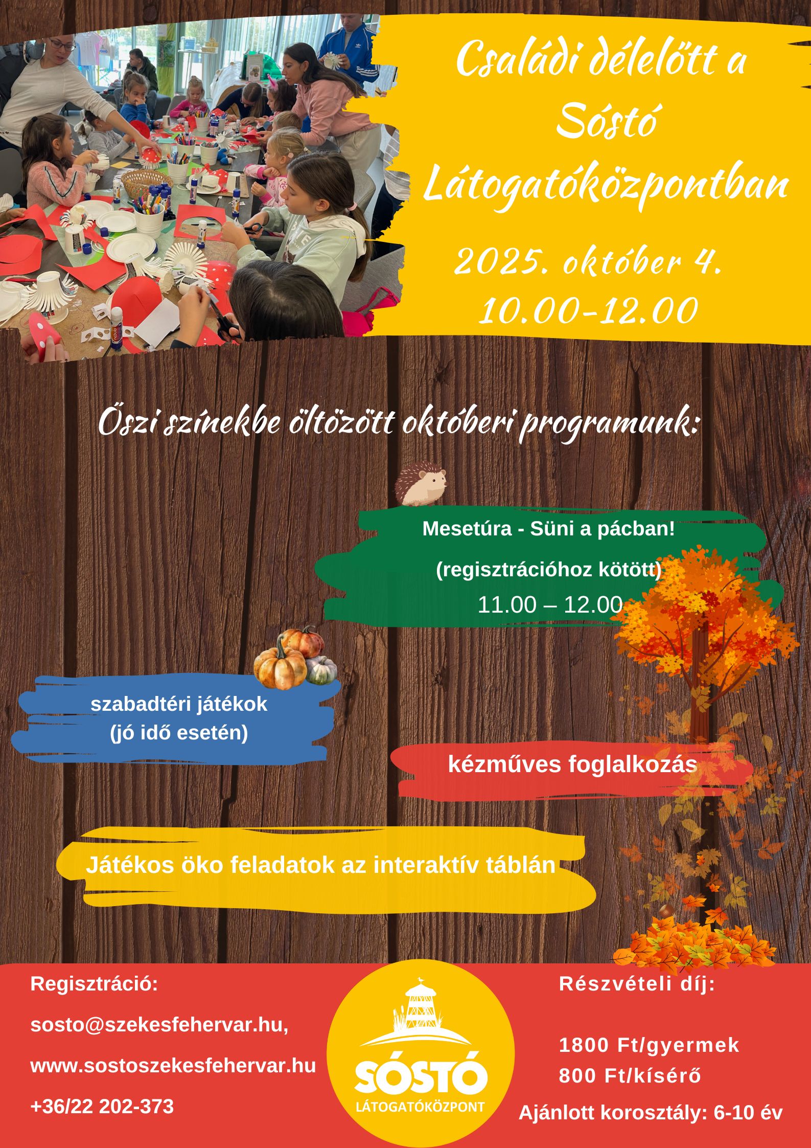 A Sóstó Látogatóközpontban idén ősszel először készülünk családi délelőttel! Környezeti nevelőink ezúttal az állatok világnapja és az őszi készülődés jegyében várják a családokat vidám kézműveskedéssel, izgalmas Mesetúrával, jó idő esetén kültéri játékokkal.